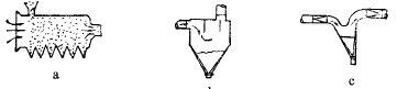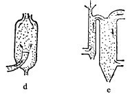 圖1(a)和(e)表示的是在上升氣流中進(jìn)行的分級(jí)器。前者得兩種產(chǎn)物;后面一種,物料從上,氣流從下部供入,可得三產(chǎn)物。