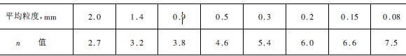 n———指數(shù),與顆粒的粒度和形狀有關(guān)(見(jiàn)表1和2)。