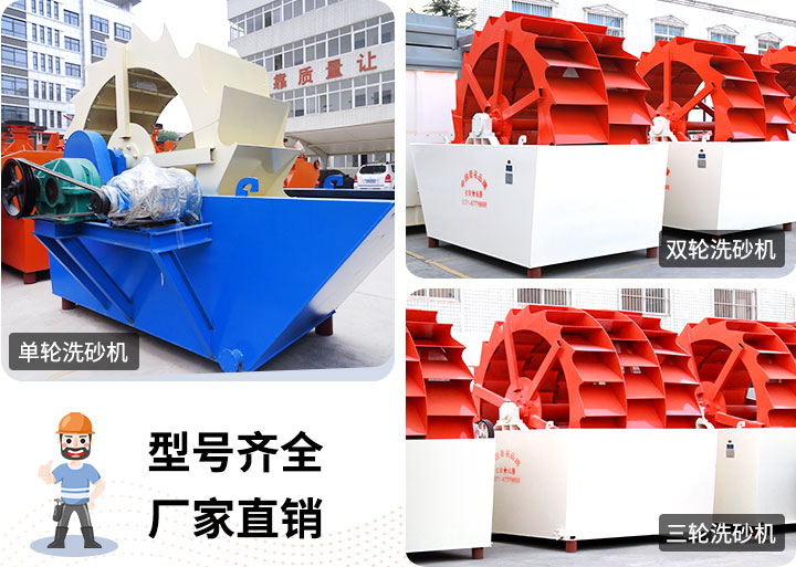 紅星洗砂設備類型多,型號全,并且廠區內有現貨提供。紅星主打輪斗式洗砂設備,根據輪斗的數量不同分為單輪洗砂機、雙輪洗砂機、三輪洗砂機;不同的輪斗數量產量也有所不同,輪斗數越多處理量相對就越大。三輪洗砂機的時處理量可達260噸,單輪的洗砂機時產量5-50噸不等,兩輪洗砂機處理量在50-100噸左右。每一款都可以根據您的實際生產情況為您量身打造;當然也可以根據您的實際需要隨意搭配多臺洗砂機器,以達到更大的時處理量。下面為您展示高清實拍: